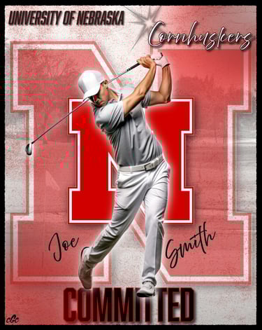 With a stylish school color(s) background on top, your choice of a campus picture or picture of your field/arena/court/course.