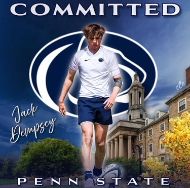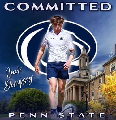 Your choice of sky (blue, sunset, school color, or night) with your choice of a campus picture or picture of your field/arena/court/course.