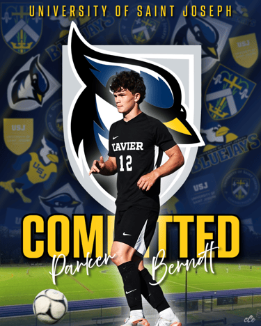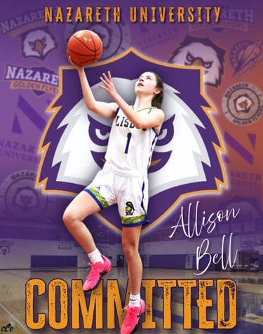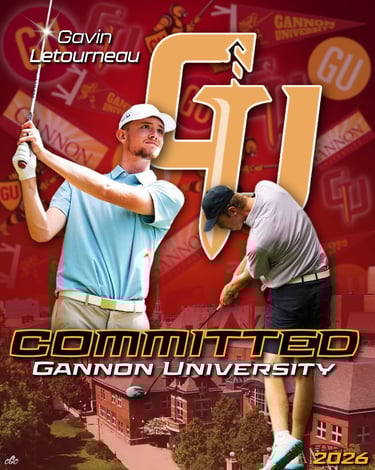 Fade your background choice of campus, arena, course, or field behind two different sized logos, & add a cool overlay and/or border