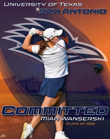 Your choice of a campus picture or picture of your field/arena/court/course with a center circle overlay in your school color