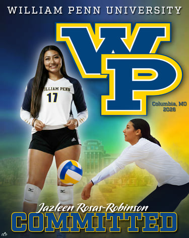 With a stylish school color(s) background on top, your choice of a campus picture or picture of your field/arena/court/course.